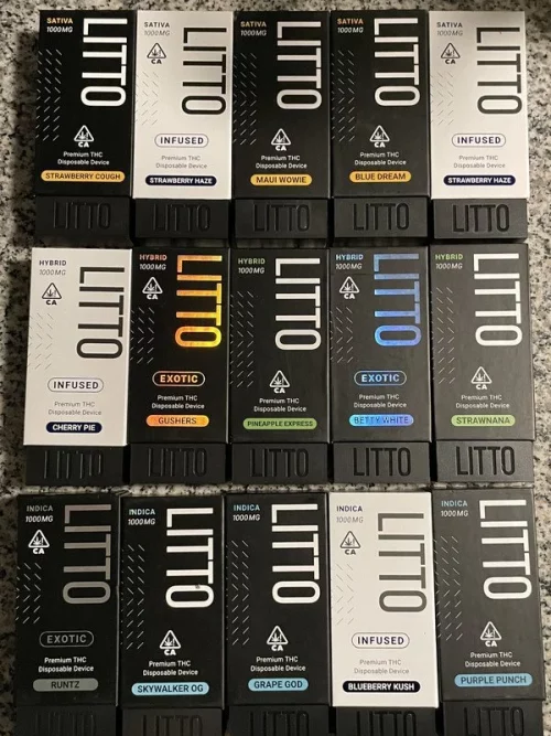 Buy LItto Carts Online. Litto Carts also known as a LITTO Disposable Device is a THC vape pen containing 1,000 milligrams of pure, premium THC distillate and terpenes with THC levels between 85-90%. The Litto cartridge device can be recharged until finished. LITTO disposable THC vape pens are only filled with clean Cat 3 cannabis distillate and terpenes. Big Vape Store’s Litto Carts for sale are Lab-tested and 100% safe for human consumption. If you do decide to try one out today, you can’t go wrong with any of the flavors.